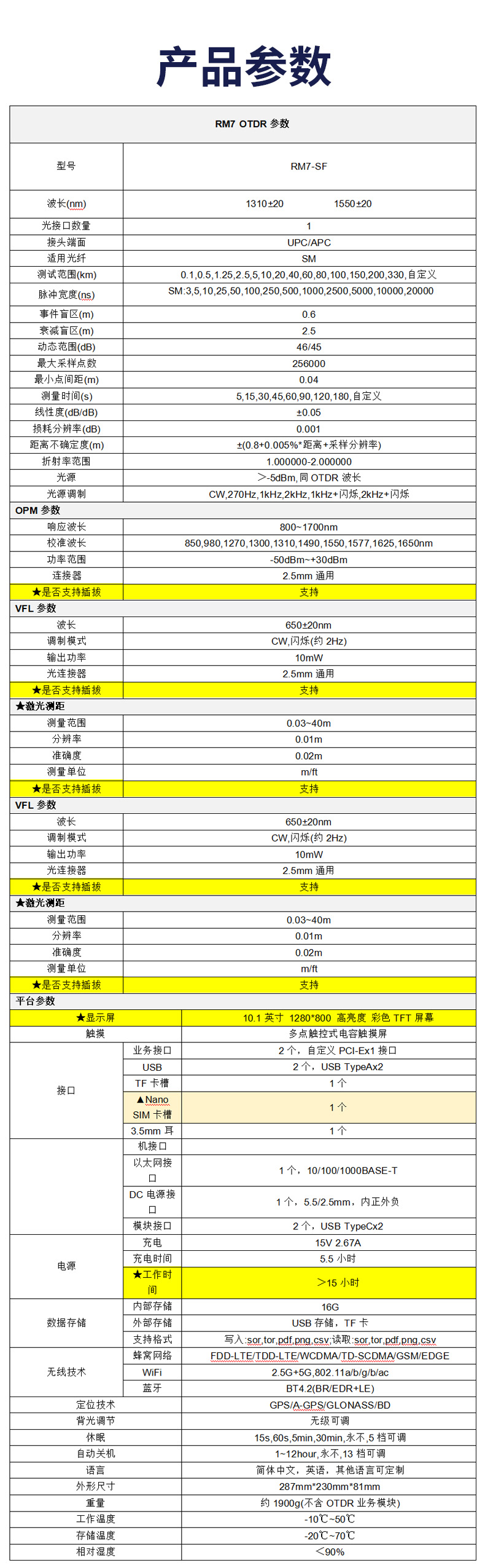 OTDR测试、光功率测试、两种观测模式、测距功能、时间地图分析、端面检测。
