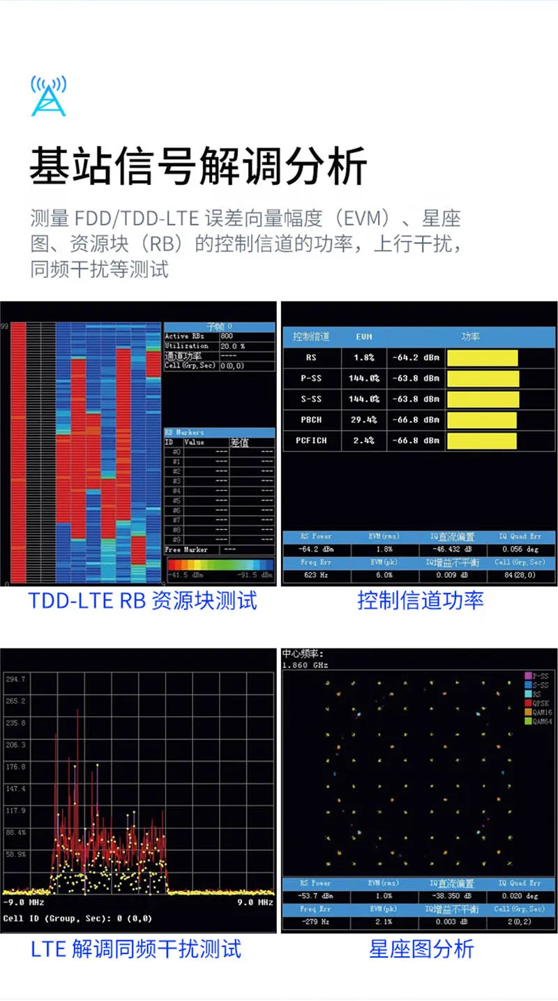 9KHz-3GHz测试频率范围,有数字余辉、基站分析测量、基站信号解调分析等功能,应用于人工智能、半导体、汽车、新能源、教育科研、航空航天、电子医疗等领域。